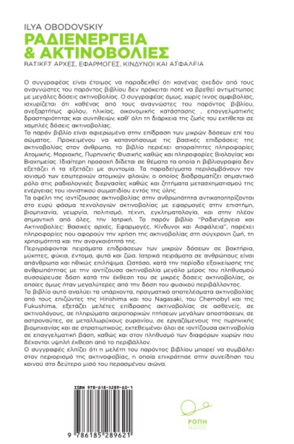 Τα οφέλη της ιοντίζουσας ακτινοβολίας για την ανθρωπότητα αντικατοπτρίζονται στο ευρύ φάσμα τεχνολογιών ακτινοβολιών με εφαρμογές στην επιστήμη, τη βιομηχανία, τη γεωργία, τον πολιτισμό, τη τέχνη, την εγκληματολογία, και την πλέον σημαντική από όλες, την Ιατρική. Το βιβλίο “Ραδιενέργεια και Ακτινοβολίες: Βασικές αρχές, Εφαρμογές, Κίνδυνοι και Ασφάλεια”, παρέχει πληροφορίες που αφορούν την χρήση της ακτινοβολίας στη σύγχρονη ζωή, τη χρησιμότητα και την αναγκαιότητά της. Περιγράφονται πειράματα επιδράσεων των μικρών δόσεων σε βακτήρια,μύκητες, φύκια, έντομα, φυτά και ζώα. Ιατρικά πειράματα σε ανθρώπους είναι απάνθρωπα και ηθικώς επιλήψιμα. Επιπλέον, το βιβλίο αναλύει τα υπάρχοντα, πραγματικά αποτελέσματα ακτινοβολίας από τους επιζώντες της Hirishima και του Nagasaki, του Chernobyl και της Fukushima, εξετάζει μελέτες επίδρασης ακτινοβολίας σε ασθενείς, σε ακτινολόγους, σε πληρώματα αεροπορικών πτήσεων μεγάλων αποστάσεων, σε αστροναύτες, σε μεταλλωρύχους ουρανίου, σε εργαζόμενους της πυρηνικής βιομηχανίας και σε στρατιωτικούς, εκτεθειμένοι όλοι σε ιοντίζουσα ακτινοβολία σε επαγγελματική βάση, καθώς και στον πληθυσμό των διαφόρων χωρών που δέχονται υψηλή έκθεση από το περιβάλλον.