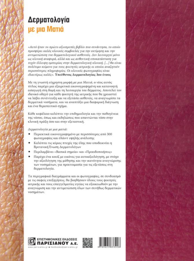 Τα περιγραφικά διαγράμματα και οι φωτογραφίες, σε συνδυασμό με τις σαφείς επεξηγήσεις, θα βοηθήσουν όλους τους φοιτητές ιατρικής και τους επαγγελματίες υγείας να εξοικειωθούν με την αναγνώριση και την αντιμετώπιση των πιο κοινών δερματικών νοσημάτων.