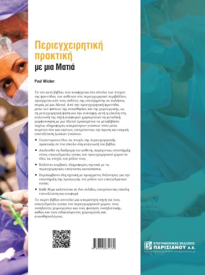 Το παρόν βιβλίο αποτελεί μια απαραίτητη πηγή για τους επαγγελματίες υγείας του περιεγχειρητικού χώρου, τους νοσηλευτές χειρουργείου και τους φοιτητές νοσηλευτικής, καθώς και τους ειδικευόμενους χειρουργούς και αναισθησιολόγους.